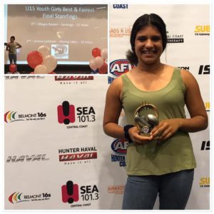 Allegra Dewan from our Under15 YG was award the Central Coast Best & Fairest player